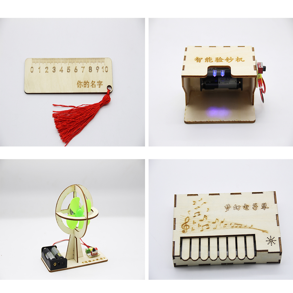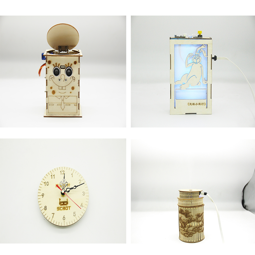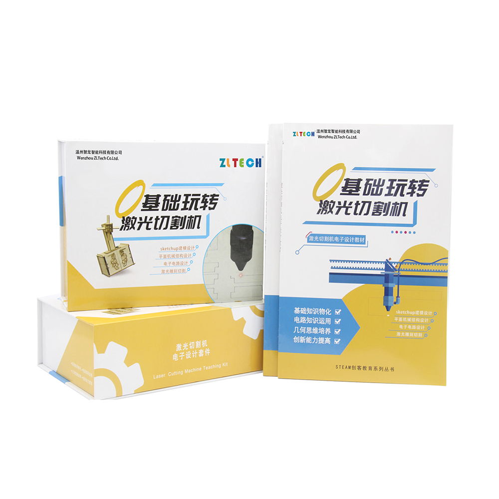 激光切割機電子設計套件的配套教材是根據套件本身的內容進行編寫的,以幾何數學的角度結合簡易的電子設計,使得老師與學生能夠以數學思維的角度去看待切割機的建模設計,能夠讓學生與老師玩轉激光切割機并進行不同的DIY項目設計,促使學生進行平面、結構以及機械傳動等方面的創作,從而引導學生進行基礎知識的物化、簡易電路知識的運用、幾何思維的培養以及創新造物能力的提高。