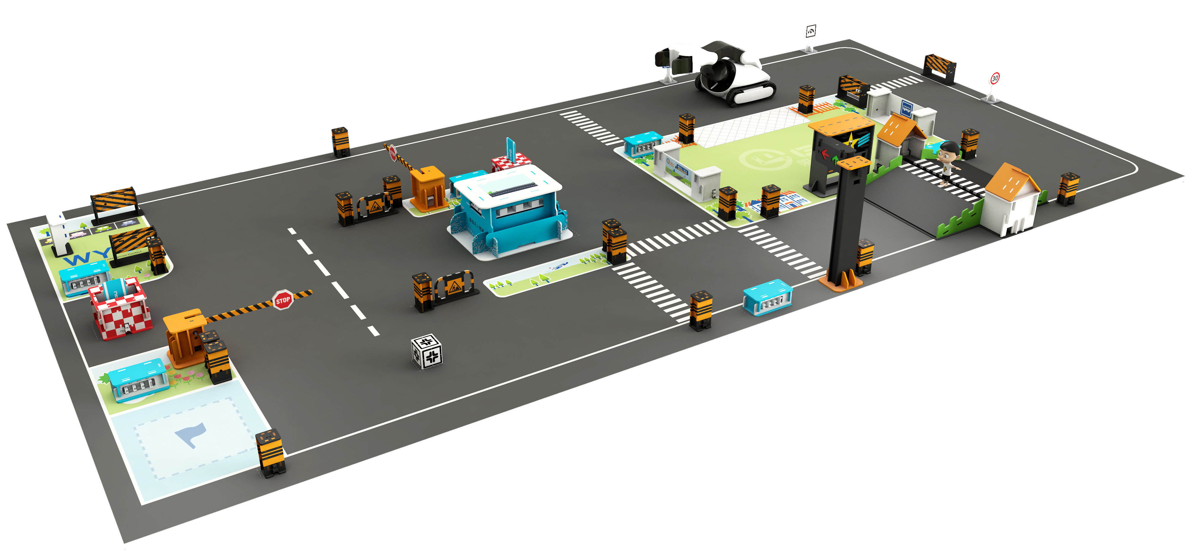 智能無人駕駛AI教育主題套件可實現自動避障,識別紅綠燈、車道、路標和人臉,禮讓行人等功能。